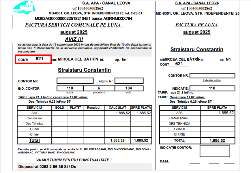 Economisiți timp și achitați serviciile APA CANAL LEOVA direct pe OPLATA.MD!