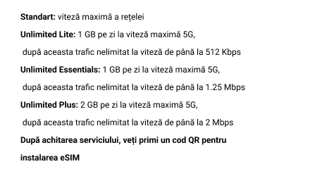 - Pasul 3 — Achită online, rapid și în siguranță. Alege metoda de plată convenabilă (card bancar Visa/Mastercard, MIA etc.), introdu datele cardului și confirmă tranzacția cu un cod OTP (3D Secure). După o plată reușită, vei primi eSIM-ul și instrucțiunile de activare pe adresa de email indicată.